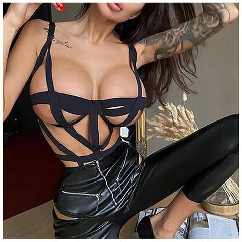 This Foxyxy Taped garment takes inspiration from BDSM bondage tape but offers a softer approach. It features the use of high elastic bands for a gentle binding effect. The design is both wild and simple, perfectly aligned with a wild and uncomplicated lifestyle. The garment utilizes a connected bodysuit design, fastened with clasps, making it easy to wear. You can also try pairing it with a denim jacket to enhance the punk-inspired aesthetic.