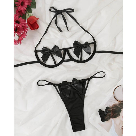 - The integration of the bowtie with the bra's underwire structure creates an adventurous and playful experience.